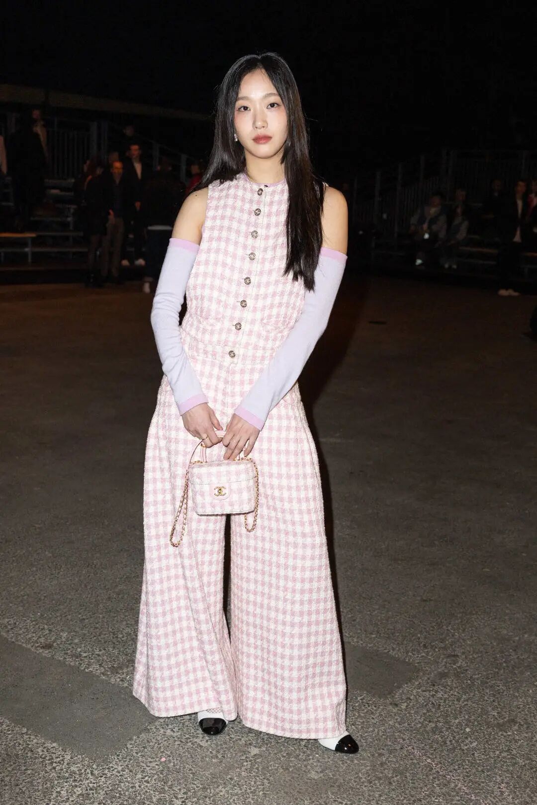 亦或是金高銀在Chanel的看秀造型,其實日常中也可以這麼穿,淡粉色的千鳥格紋連體衣,幹練颯爽又不過於成熟,柔和的色彩和利落的款型完美中和,office girls可以全套get。