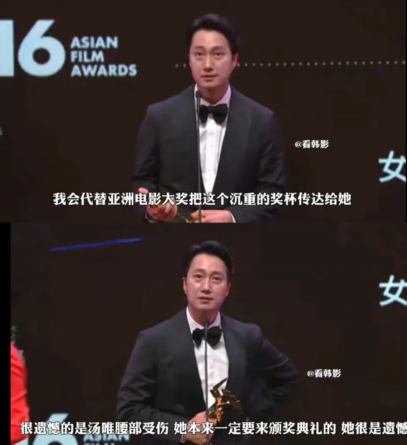 不過遺憾的是,湯唯雖然憑藉《分手的決心》拿到了最佳女主角,但因為腰傷缺席了頒獎典禮,最後由《分手的決心》男主演樸海日代領。